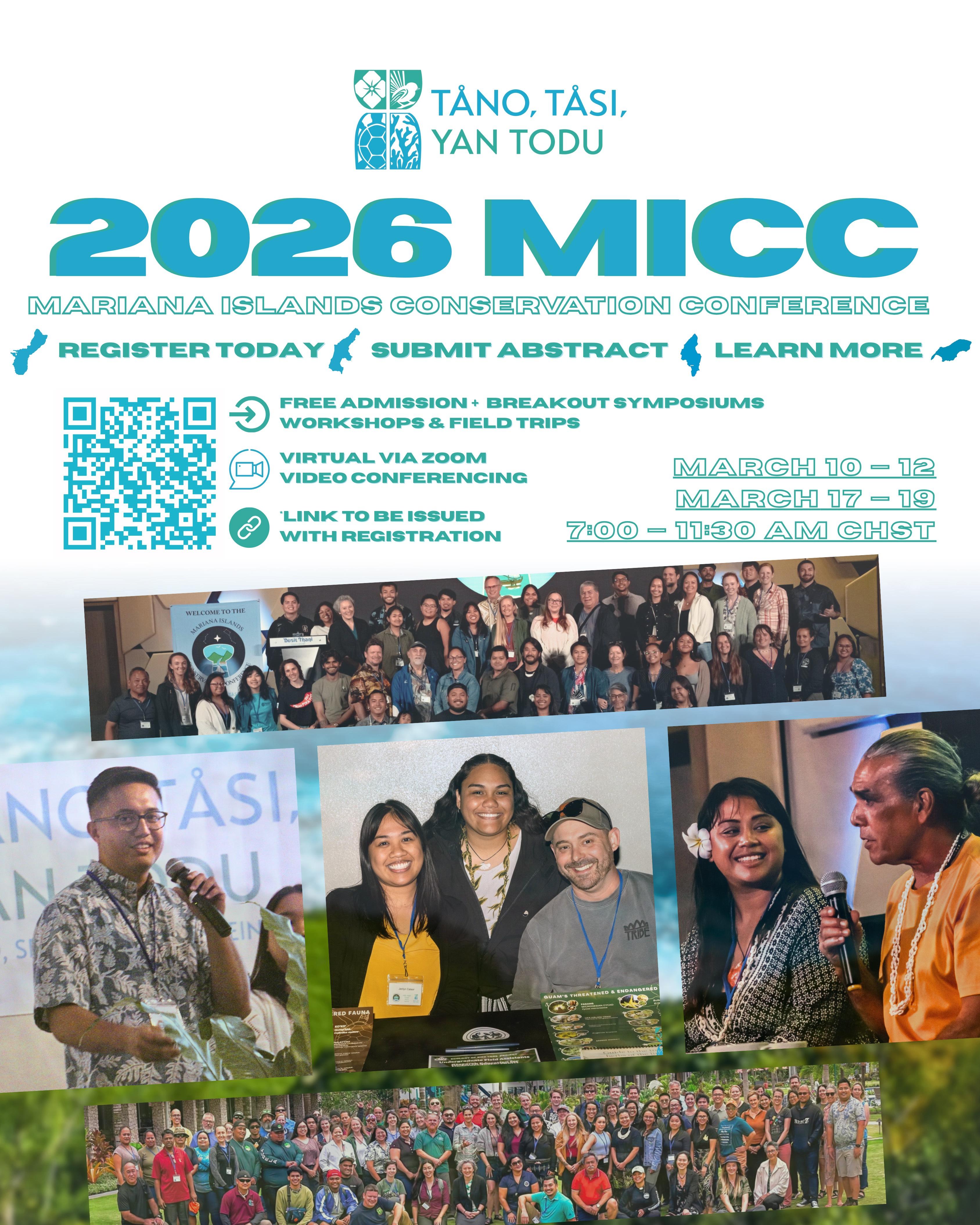 The 2026 MICC will be held online via Zoom on March 10–12 and March 17–19, 2026, from 7:00 a.m. to 11:30 a.m. (CHST). Registration is free and open to the public at marianasterrestrialconservation.org. Access information will be provided to registered participants prior to the event.