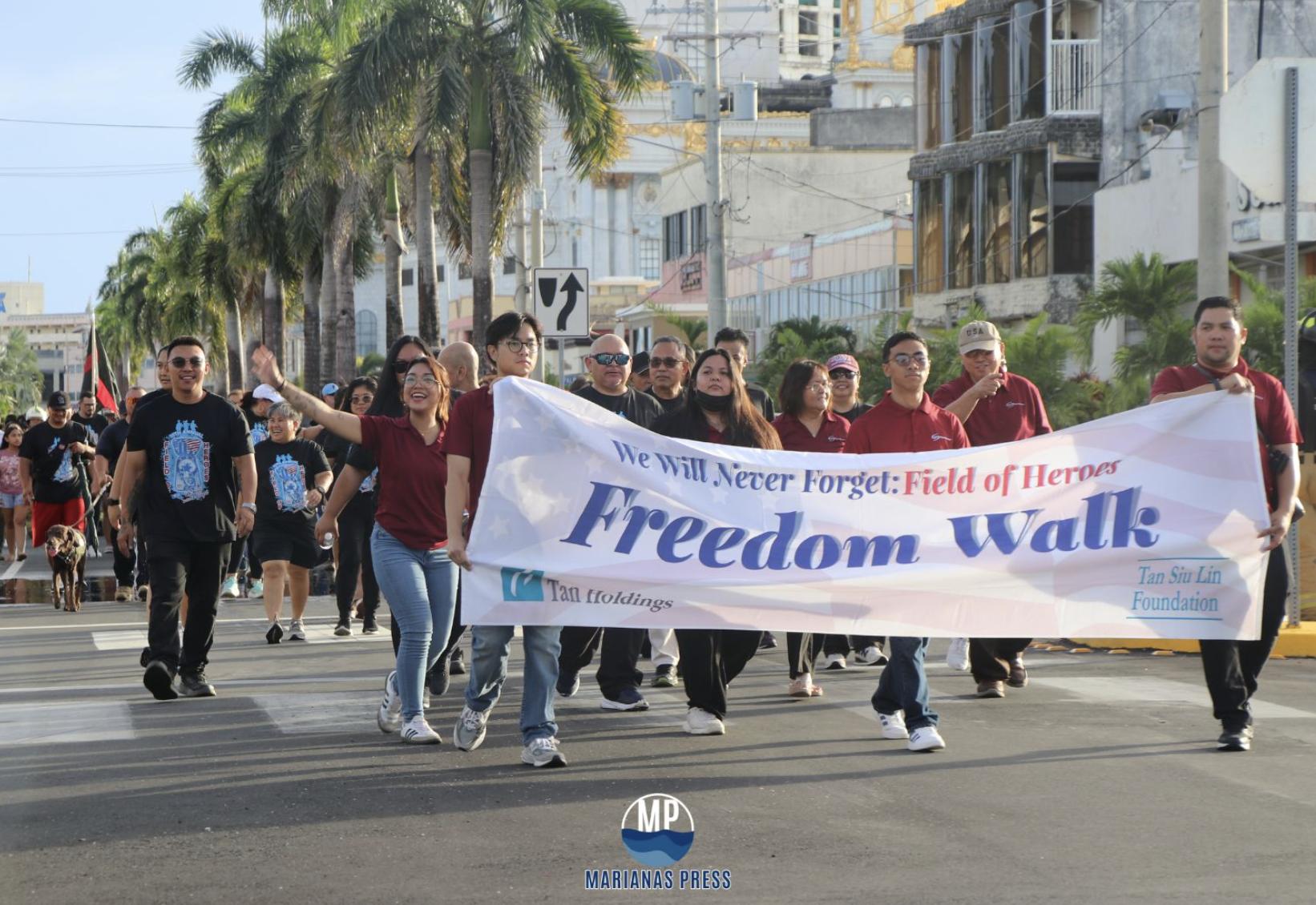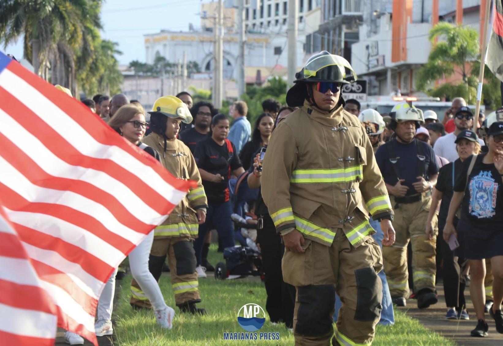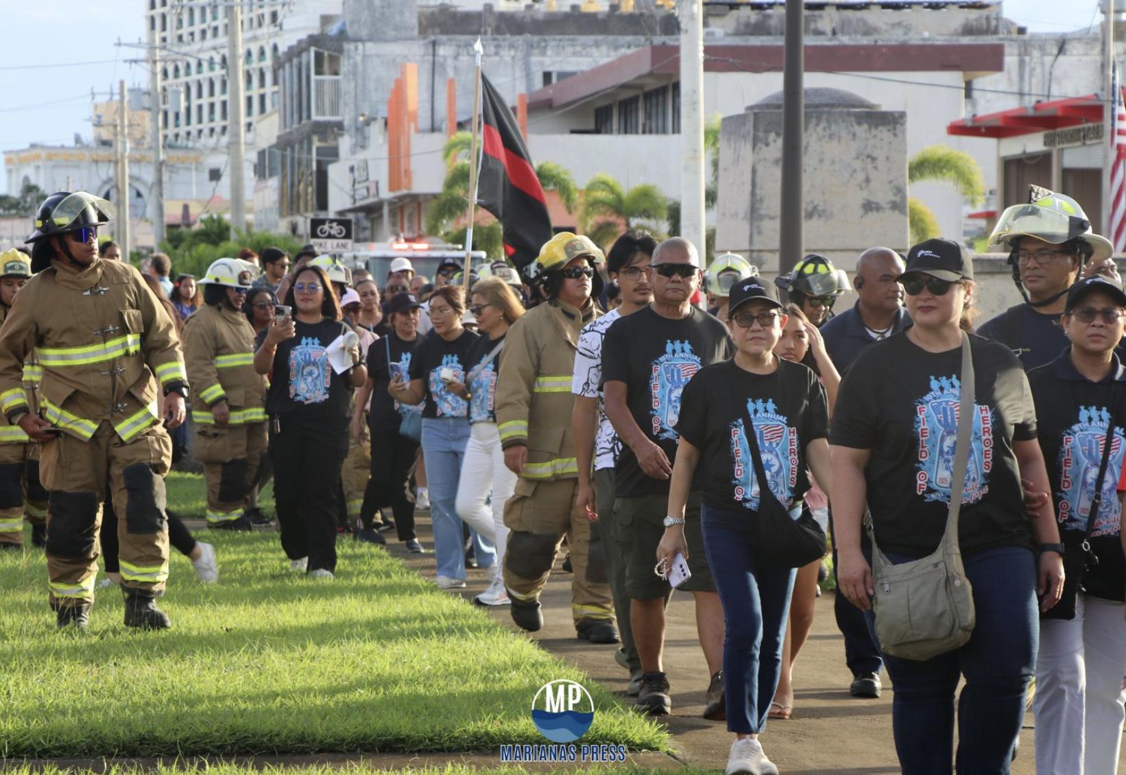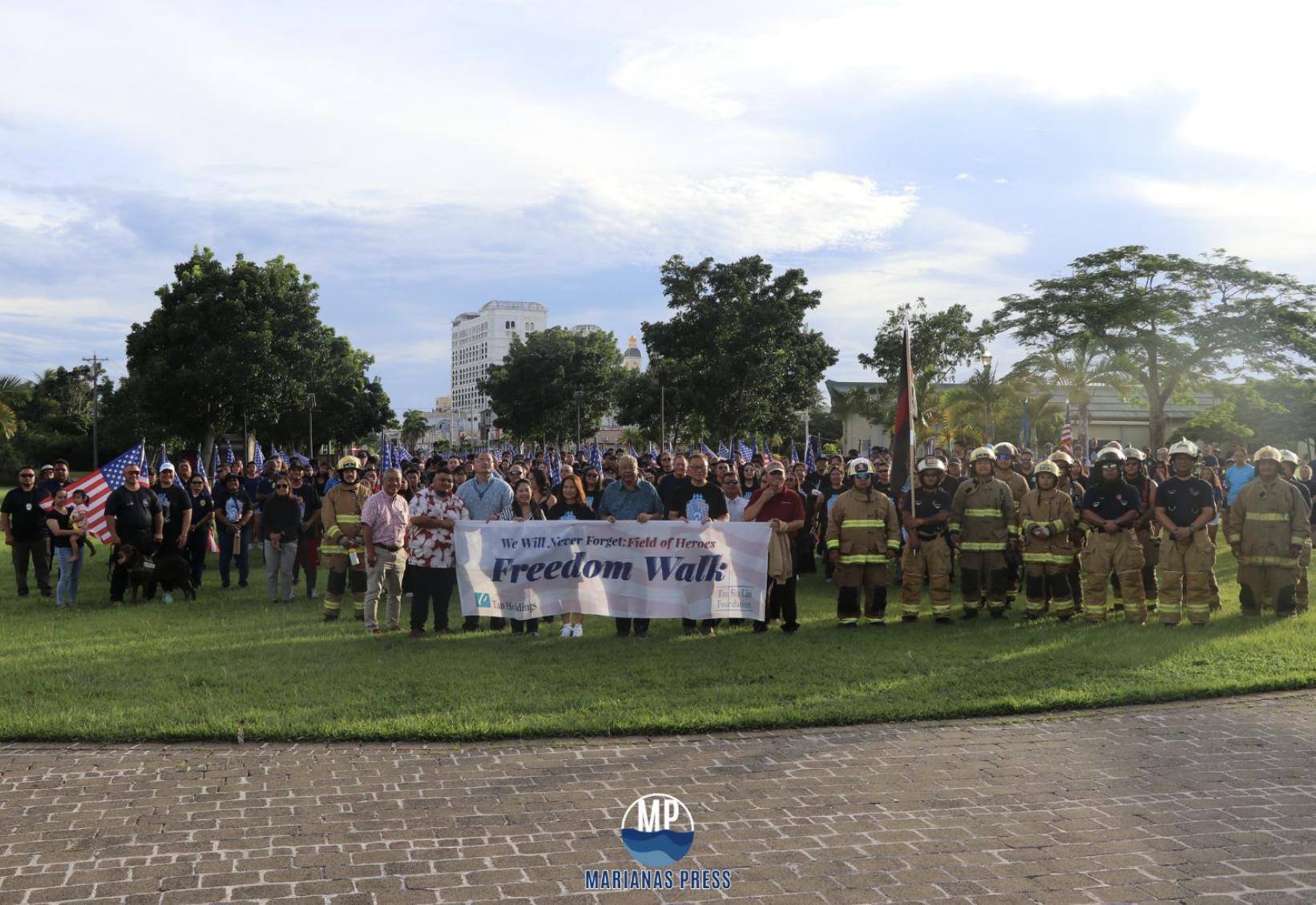 To commemorate the lives lost during the terrorist attacks of 9/11 and honor the sacrifice of first responders, dozens of community members, frontliners, and dignitaries participated in the Freedom Walk and Field of Heroes ceremony yesterday in Garapan.