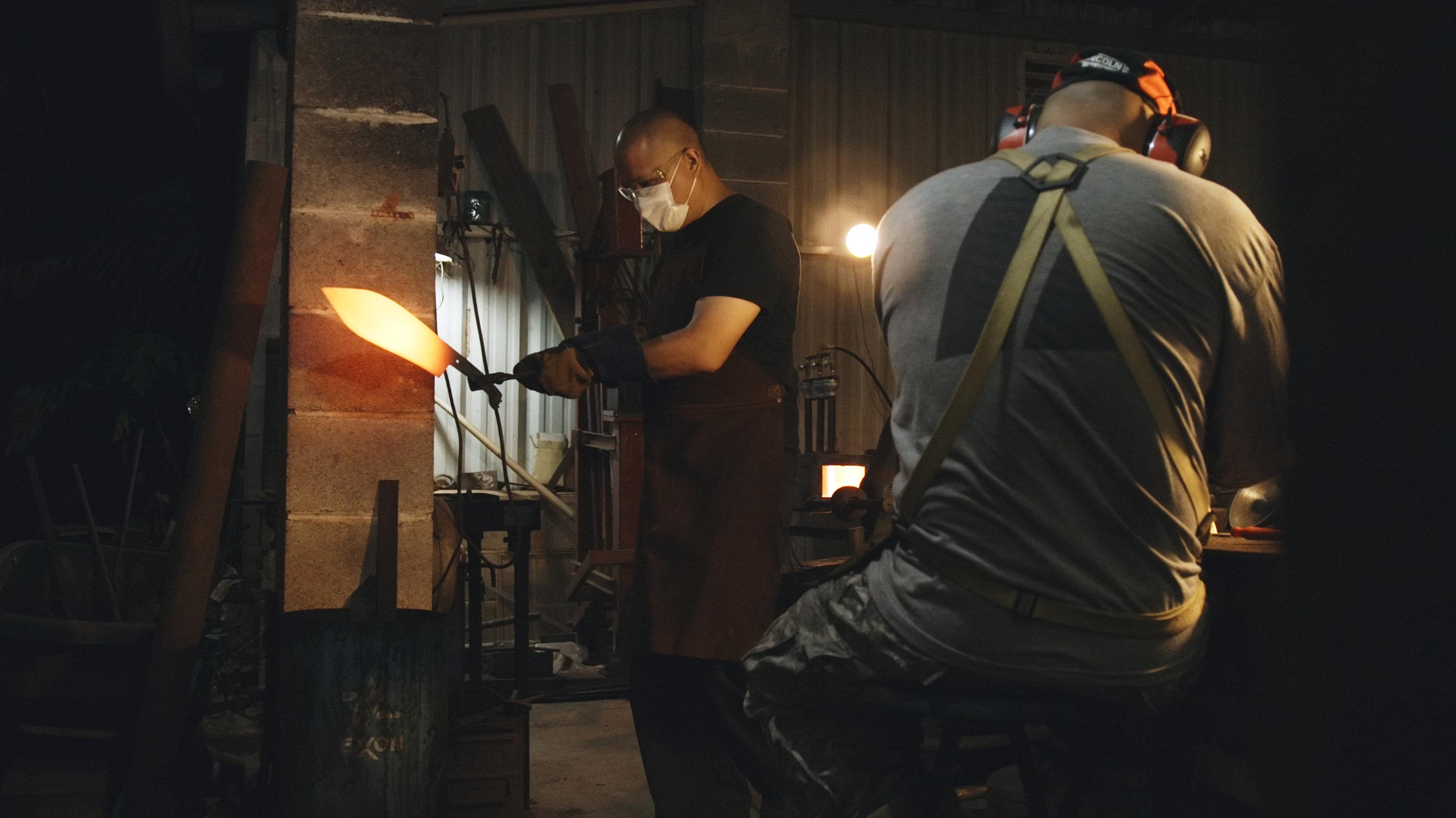 When asked if he tried incorporating other methods of forging with what the Lizama family knew, Sean notes that Japan's refined smithing culture tends to recycle their own steel, folding the metals into itself over and over again to remove impurities. This process strengthens the blades, but the technique was borne from necessity - recycling was able to accommodate Japan's inability to supply a rising demand for metals. He goes on to say that in Guahan, attitudes like these are reflected in the smithing community's own processes.