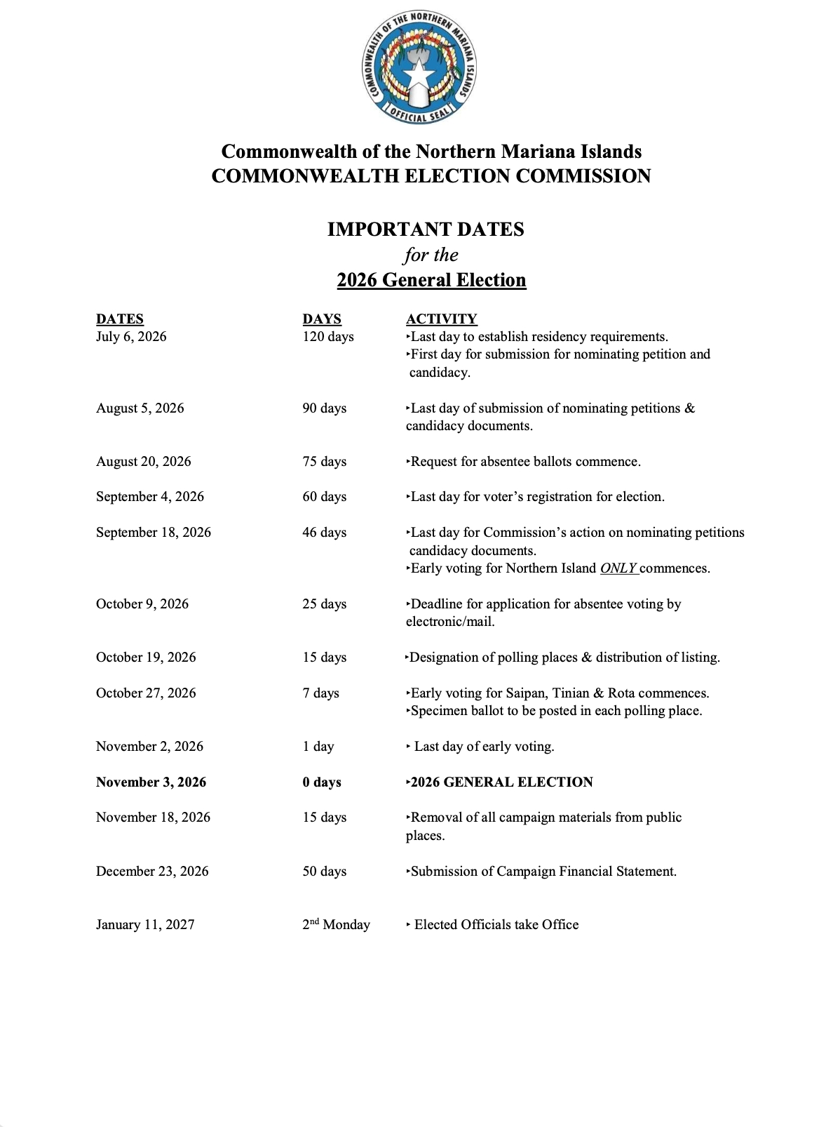 Separately, the Commonwealth Election Commission has released key dates for the 2026 General Election. The final day for submitting nominating petitions and candidacy documents is August 5, 2026.