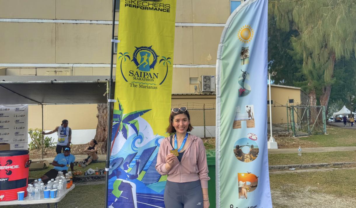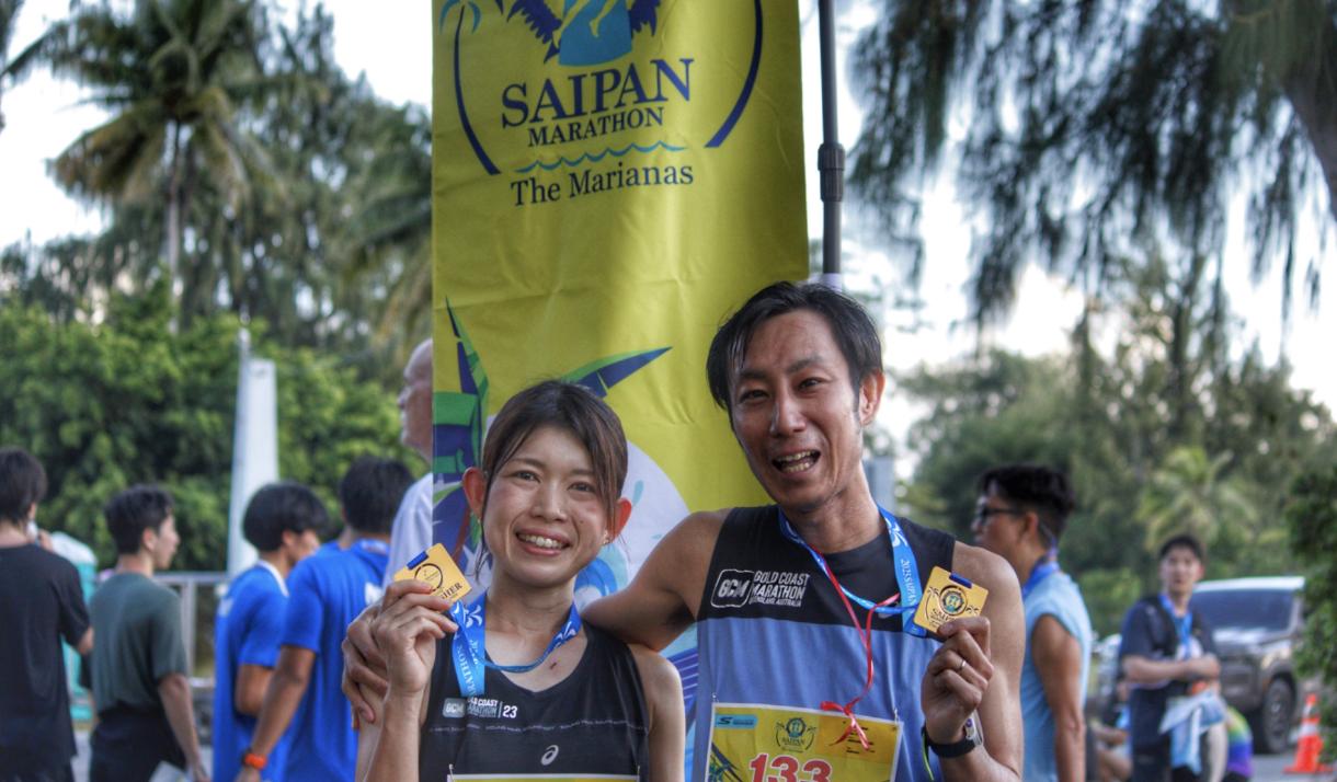 Tomomi also took first place in the 2020 Saipan Marathon and ran alongside Hiroki in this year’s Saipan Marathon for the first time. Tomomi shared the same sentiments about the course as her husband and said, “It was very hard and dark.”