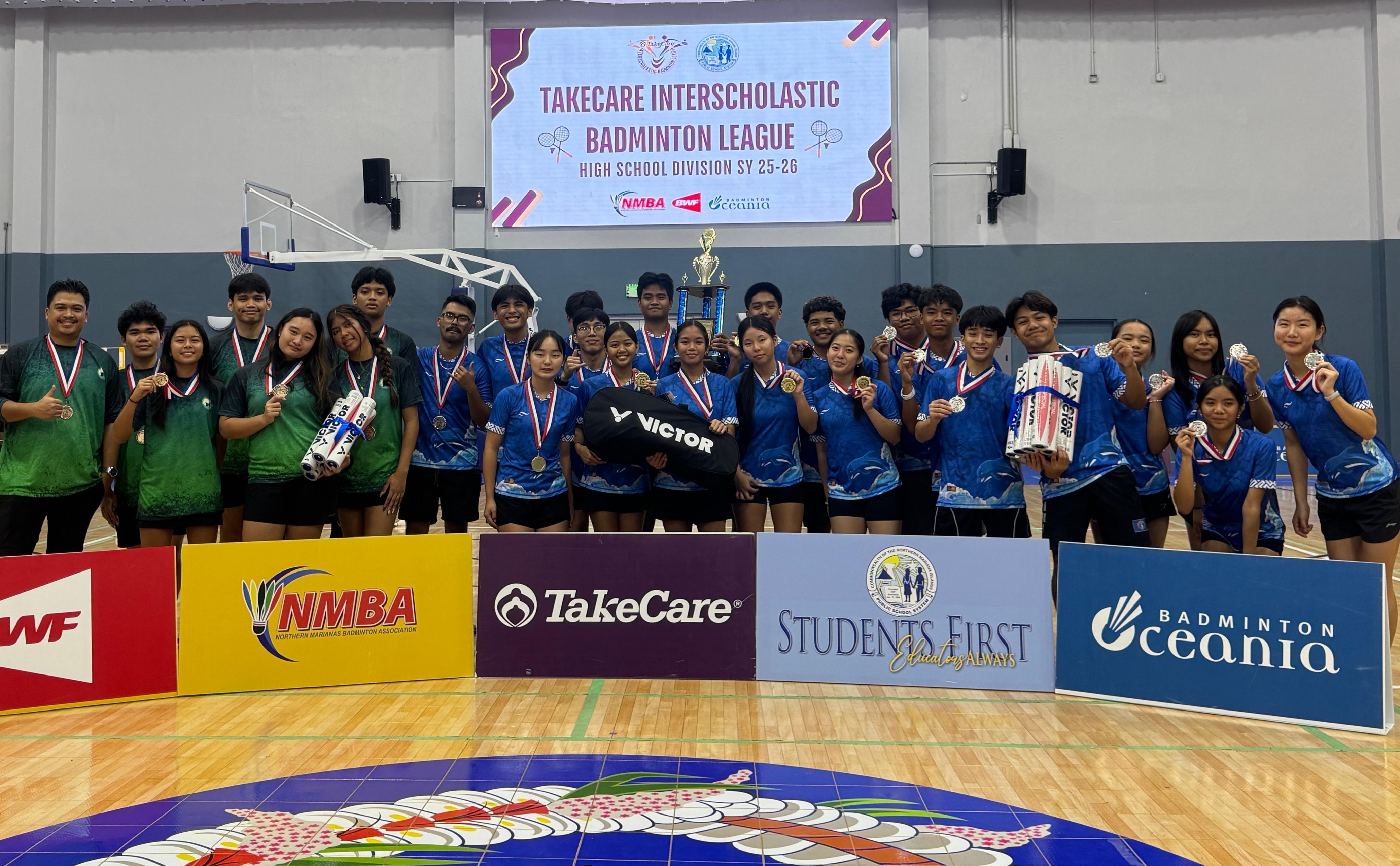 Marianas High School’s badminton Team 1 and 2 faced off in the 2025-2026 PSS-NMIBA-TakeCare Co-Ed High School Badminton League finals after taking down each team in their path on Saturday, Mar. 14, at the Gilbert C. Ada Gymnasium.