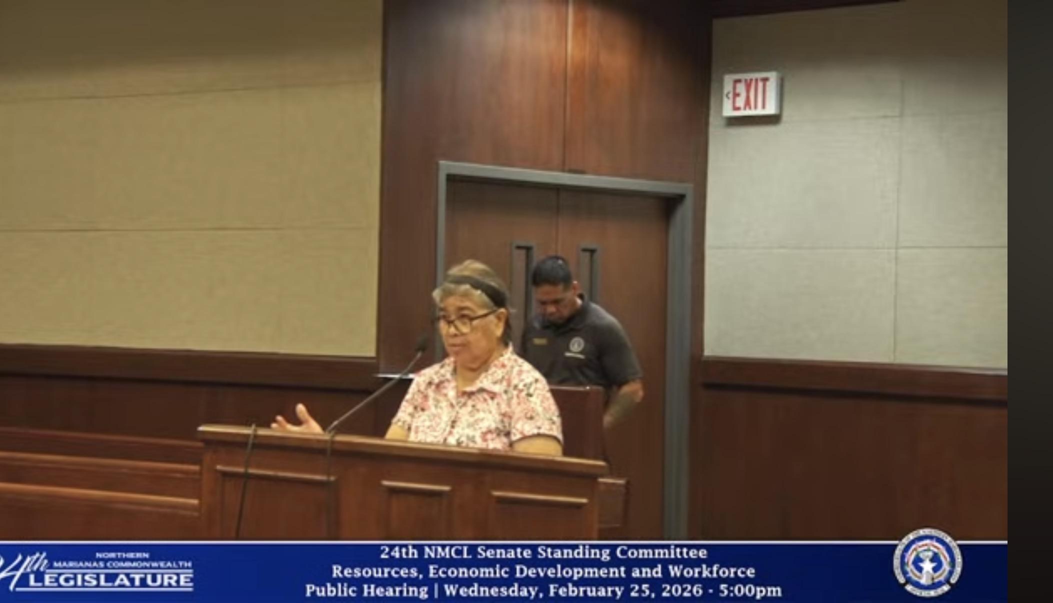 The Senate Standing Committee on Resources, Economic Development, and Workforce, chaired by Corina L. Magofna, convened the hearing to receive testimony on a proposal introduced by Sen. Manny Gregory T. Castro to amend Article 12 of the NMI Constitution.