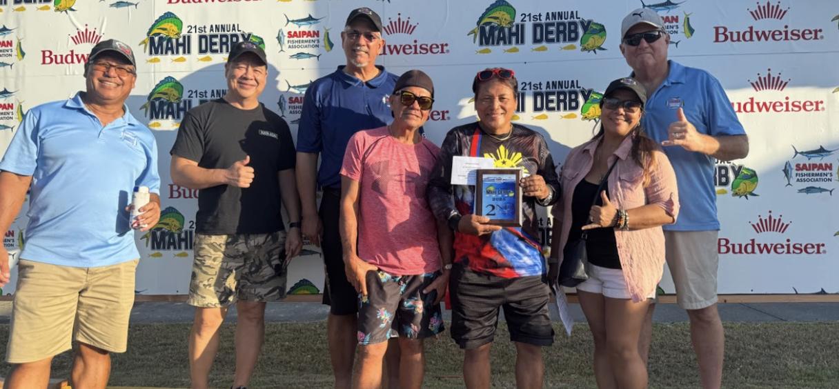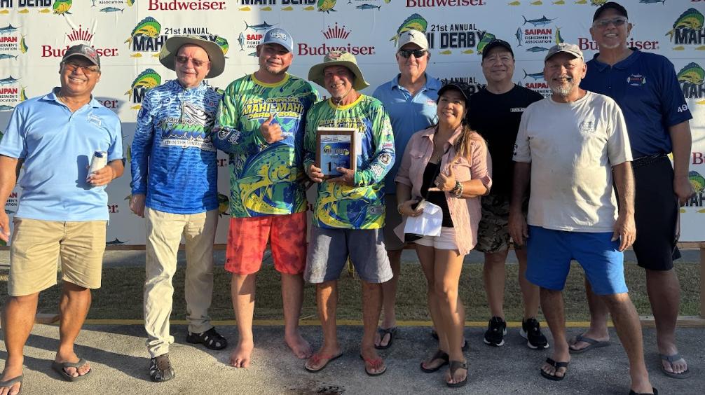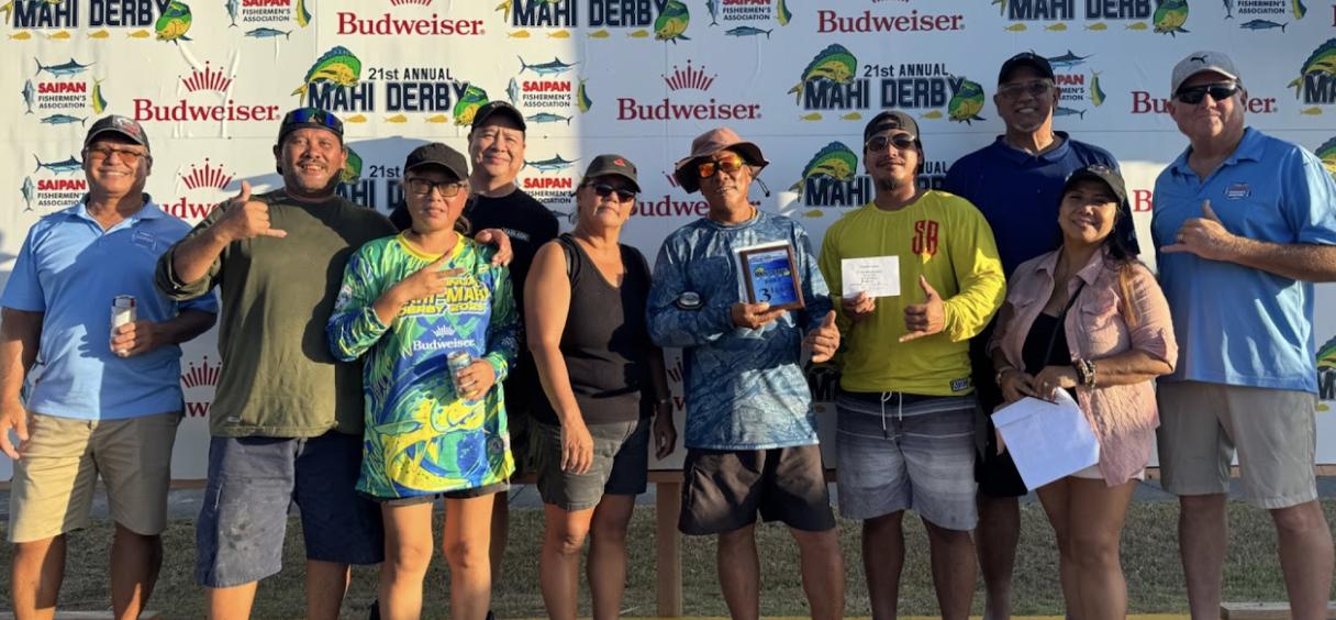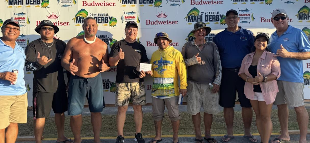 Captain George Moses Sr. and the crew of Sweet Candy II, which is the newer version of their old boat Sweet Candy—including his son Moses Jr. and Tom Tucker—caught the winning mahi on their way back to Saipan on their way back from fishing off the waters of Goat Island.