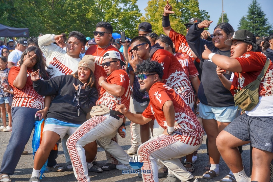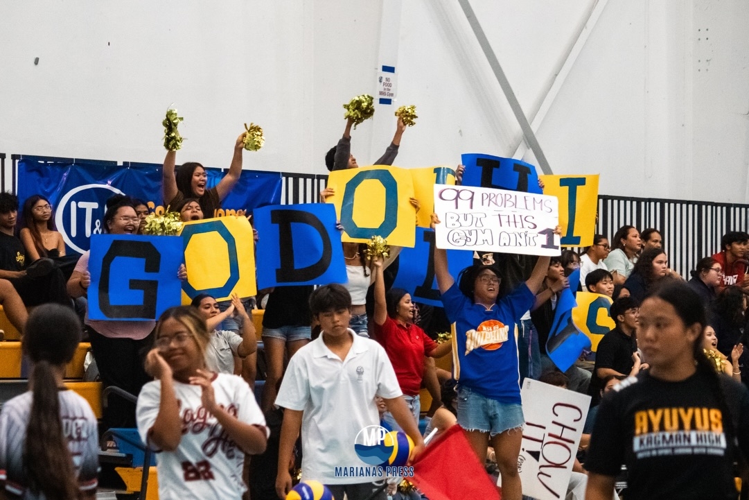 Marianas High School Dolphins girls volleyball team fans and supporters cheer during a regular season game